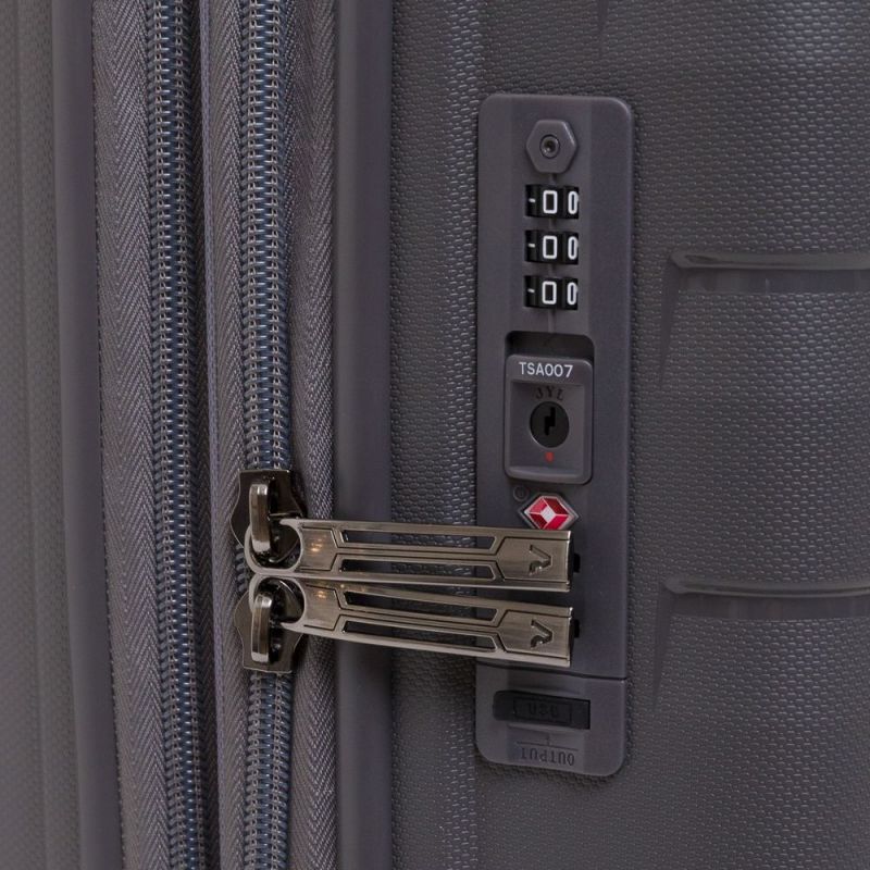 - Чемодан с 2 отделениями: одно из них с фиксирующими ремнями и сетчатой шторкой на молнии, второе — с разделителем на молнии