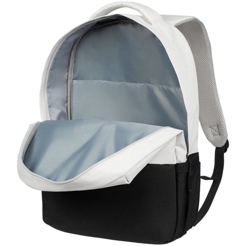 Двухцветное исполнение с темным низом и более светлым верхом, с одной стороны, помогает рюкзаку дольше сохранять опрятный внешний вид, а с другой — позволяет активнее и контрастнее выделить логотип компании.
