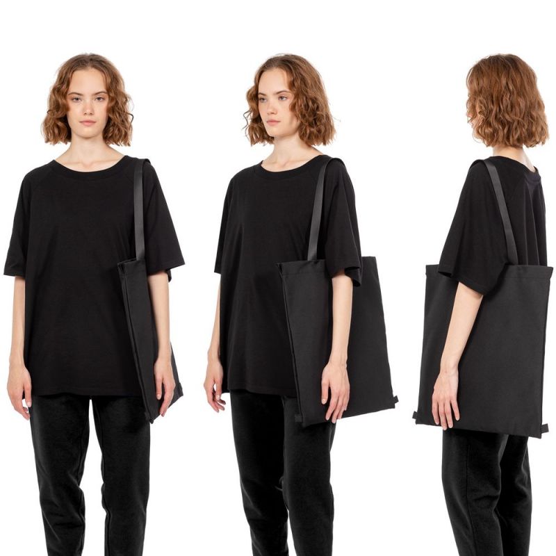 Базовый шопер разработан в рамках единой коллекции одежды и аксессуаров и легко комбинируется с ее элементами. Специально спроектированные лекала и технологии пошива открывают простор для любых вариантов кастомизации и нанесения изображений. На видимой части изделий нет лейблов с айдентикой бренда, а название бренда с уходника легко удалить.