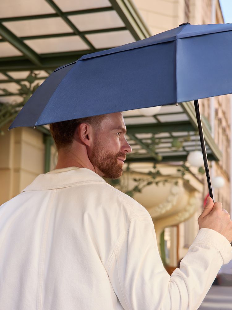 Оригинальное исполнение классического зонта — с двойным куполом, устойчивым к порывам ветра.