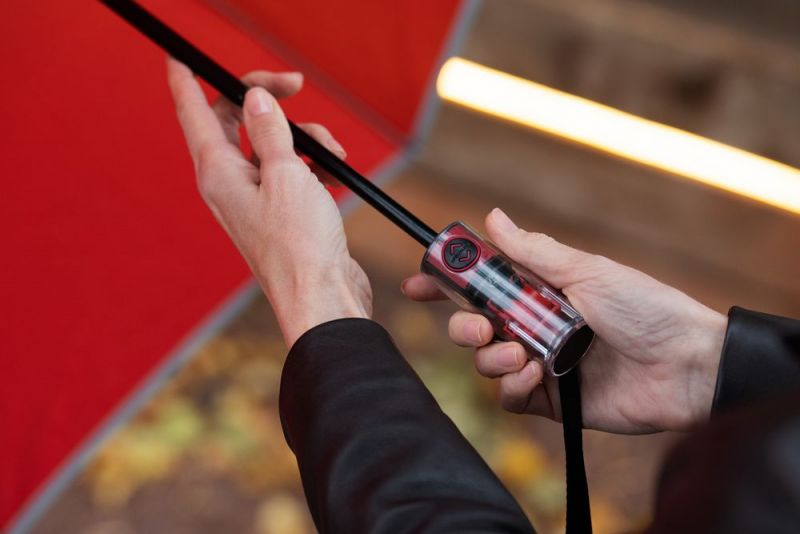 Складной зонт Futurum привлекает внимание оригинальным дизайном. Складываясь после дождя, он прячет мокрую поверхность в себя, а сухая остается снаружи. Светоотражающий кант и ручка из прозрачного пластика, не скрывающая ярких деталей внутри, добавляют внешнему виду зонта футуристичности.