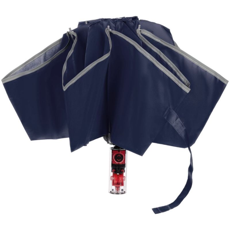 Зонт наоборот складной Futurum со светоотражающим кантом, темно-синий