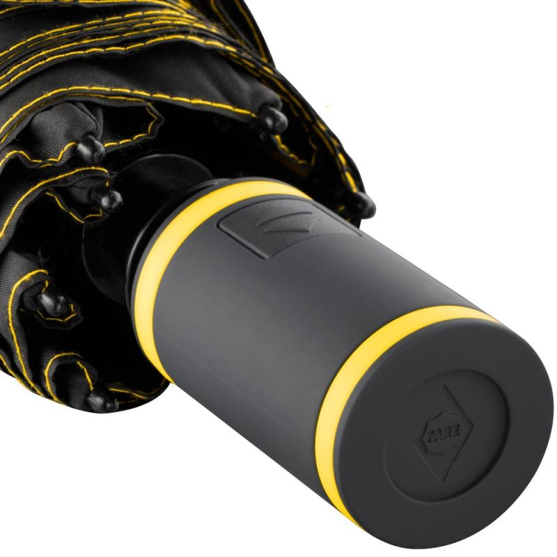 Купол зонта AOC Mini произведен из сертифицированного OEKO-TEX полиэфирного эпонжа из переработанного пластика, окрашенного по технологии waterSAVE. Новый процесс окрашивания — непосредственно в процессе производства материала — снижает потребление электричества, воды и химически активных веществ.