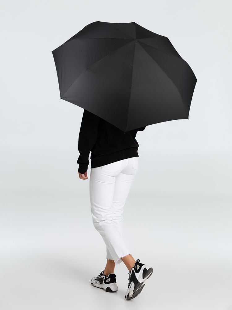 Зонт оснащен механизмом с пружиной и спицами из стекловолокна. Благодаря этому когда при экстремальных порывах ветра купол выгибается, механизм пружинит, не давая спицам погнуться или сломаться.