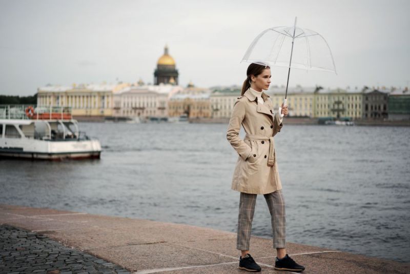 Прозрачный зонт-трость Clear — это стильный и практичный аксессуар, который защищает от дождя, не скрывая окружающий вид.