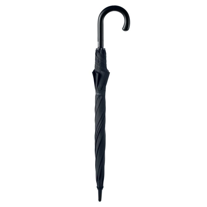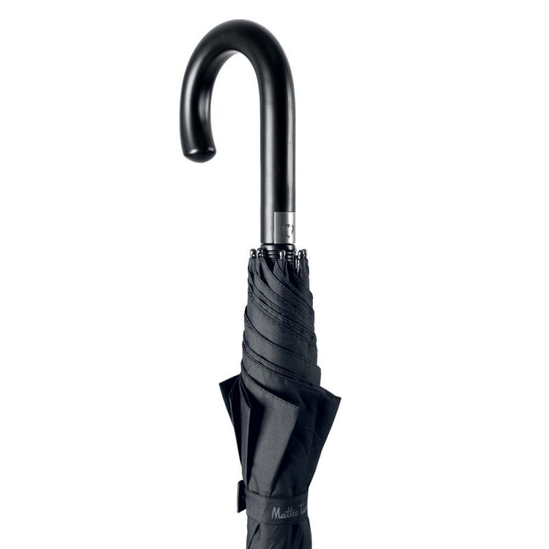 Тефлоновое покрытие ткани отталкивает воду и грязь, обеспечивая долговечность и легкий уход. Усиленная ветрозащитная конструкция выдерживает даже сильные порывы ветра, а автоматическое открывание делает использование максимально удобным. Эргономичная ручка из матового пластика с изящным дизайном и противоскользящим верхом добавляет комфорта. Зонт упакован в стильный чехол из той же ткани — это не только практично, но и элегантно.