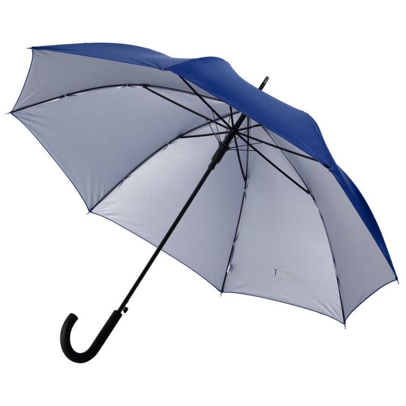 Легкий зонт-трость классической формы, который выглядит нескучно благодаря современным деталям исполнения — серебристому покрытию на внутренней части купола и мягкой прорезиненной ручке.