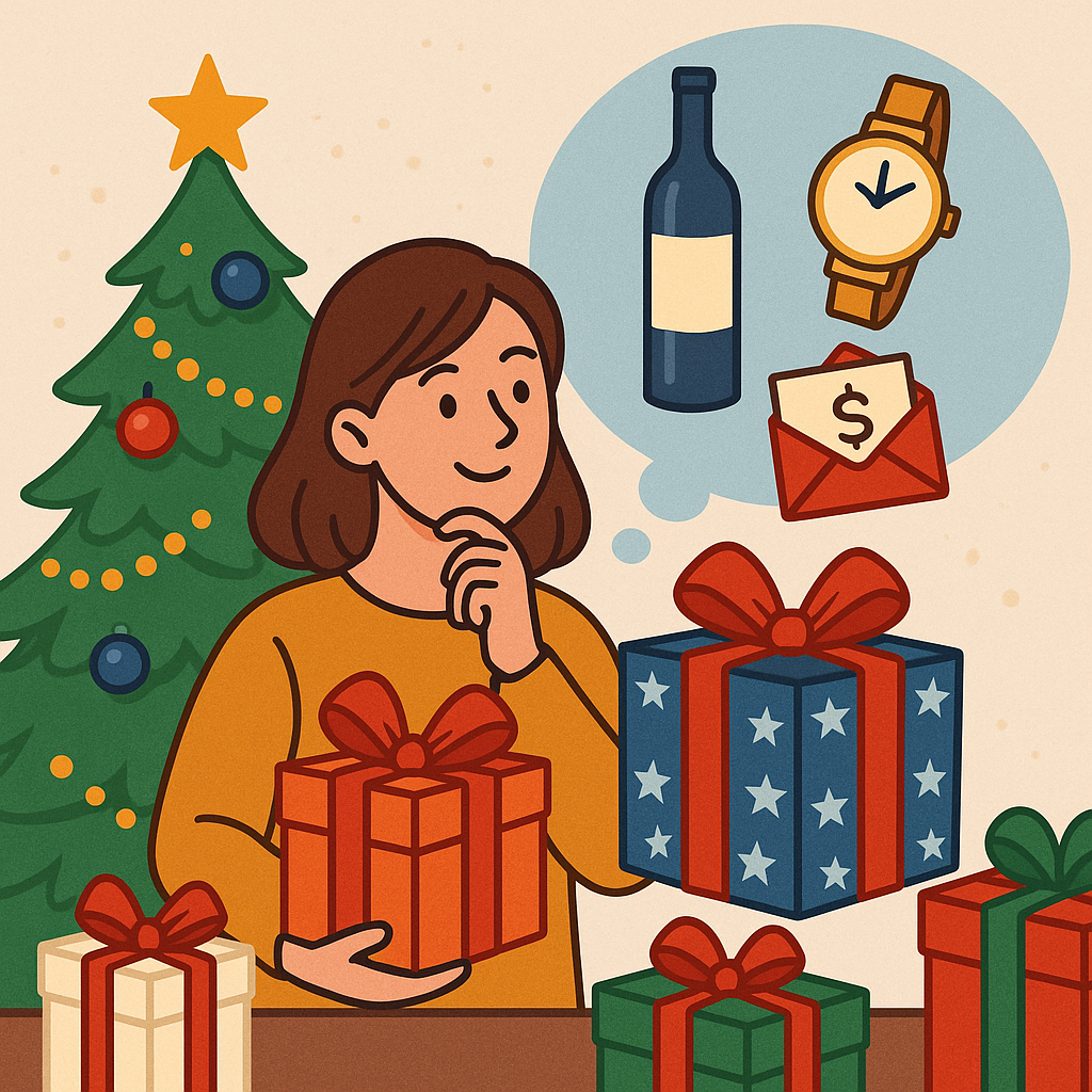 - Подарочная карта магазина. Если уж совсем не уверены в предпочтениях, подарочная карта крупного маркетплейса или магазина электроники/книг – беспроигрышно. Сейчас практически все ритейлеры предлагают красивые сертификаты. Получатель сам выберет подарок своей мечты – от книги до бытовой техники. Такой подход гарантирует, что подарок точно будет нужным. Чтобы сделать презент личнее – заменить на «более личным», можно сопроводить карточку искренним поздравлением или небольшим сувениром (например, шоколадкой, елочной открыткой), чтобы сохранить элемент сюрприза.